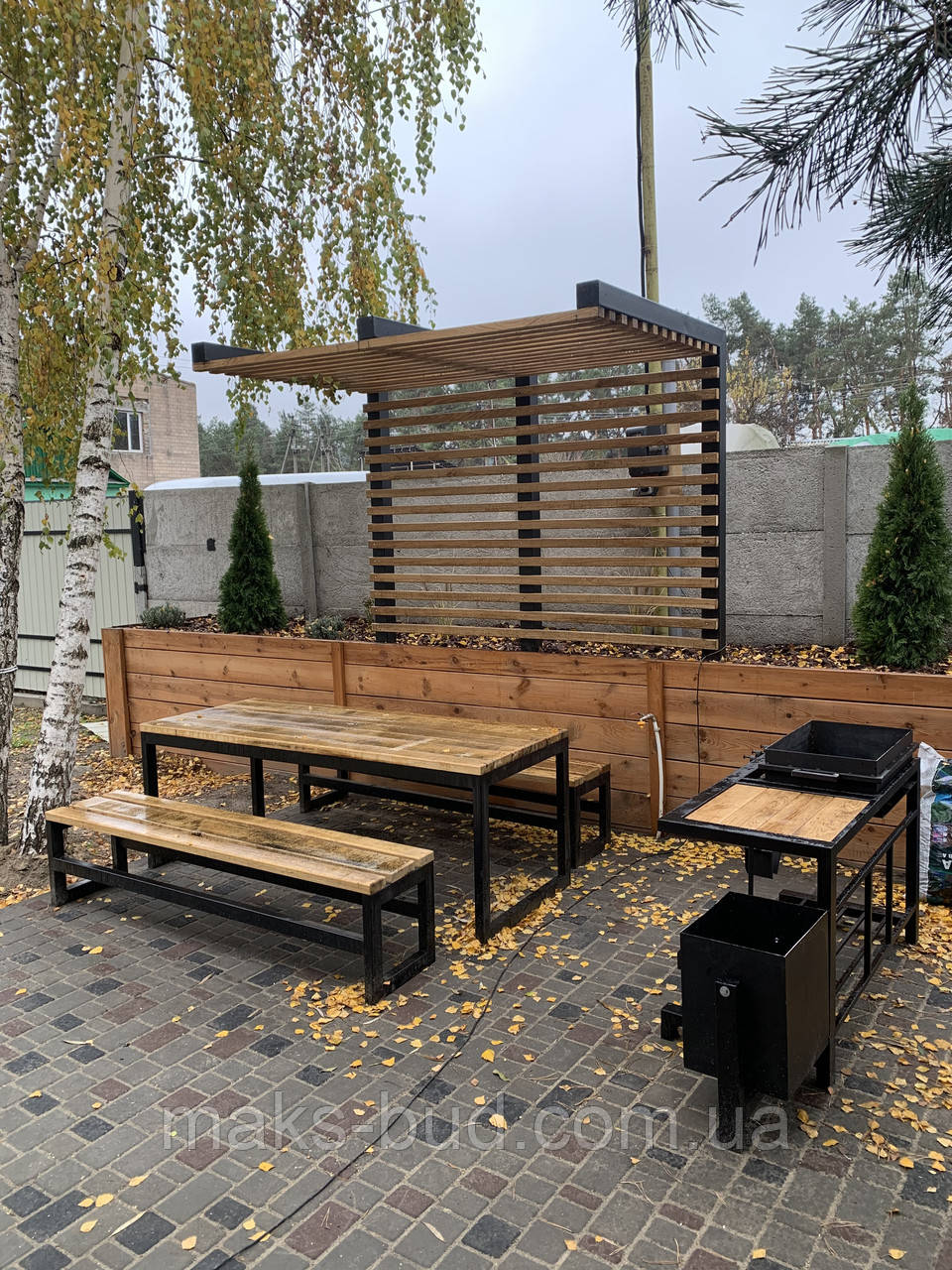 Продам стіл та лавочки. Каркас — метал 60х30.